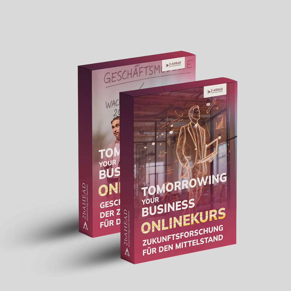 Das Zukunftssicherheit Bundle ist die Kombination aus zwei Onlinekursen, die mittelständische Unternehmen fit für die kommenden Jahre machen. Sie lernen, wie Sie Zukunftsforschung systematisch einsetzen und daraus tragfähige Geschäftsmodelle entwickeln – praxisnah, datenbasiert und sofort im Unternehmen anwendbar.